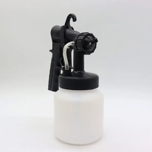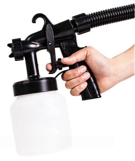 Riempi il serbatoio con qualsiasi tipo di vernice, puntalo verso la superficie che desideri verniciare e premio il grilletto